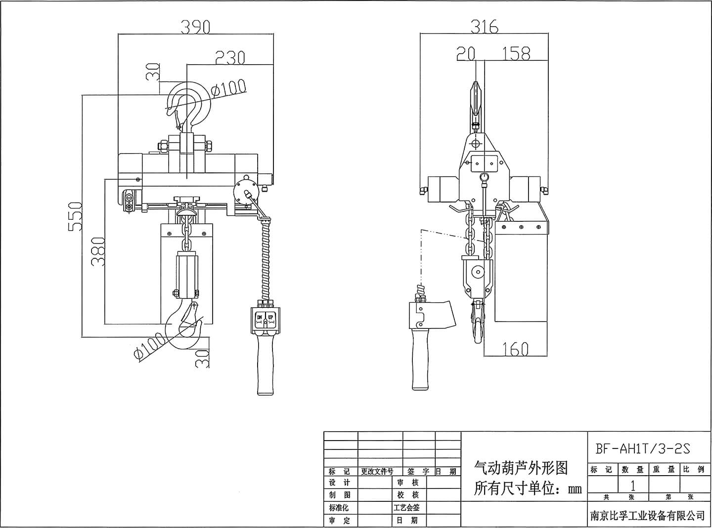 氣動(dòng)葫蘆型號(hào):BF-AH1T/3-1S