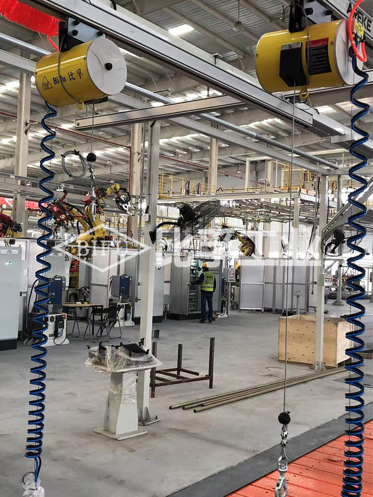 汽車主機廠雙軌配2臺氣動平衡吊工位應用靈活、快捷、節能。