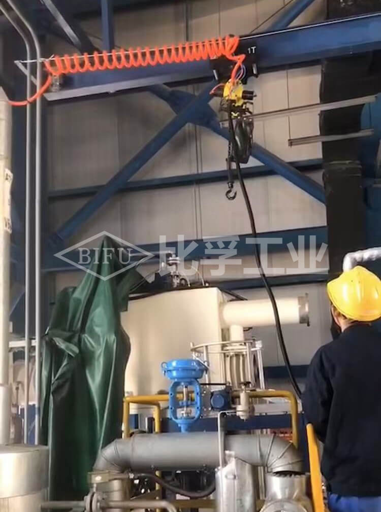 化工原料轉(zhuǎn)運(yùn)輸送線氣動(dòng)平衡吊案例